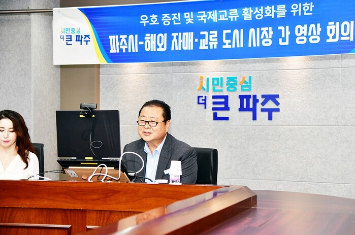 [로컬세계 = 이영원 기자]김경일 경기 파주시장이 코로나19로 침체된 해외 도시와의 의사소통을 강화해 우호관계를 유지하고 새로운 교류협력 방안을 찾아 활성화하기 위해 해외 자매·교류도시의 시장들과 영상회의를 이어가고 있다.