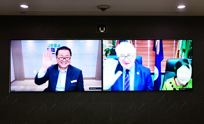 지난 29일 호주 투움바시와 진행된 첫 번째 영상회의에서 폴 안토니오 투움바시장은 김 시장의 당선을 축하했으며, 김 시장은 9월에 개최되는 투움바시 꽃축제의 성공적 개최를 기원한다고 전했다.