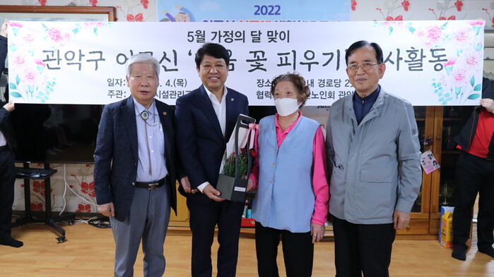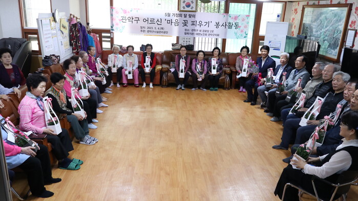 관악구시설관리공단(이사장 천범룡)이 5월 4일, 관악구 내 경로당 2곳을 방문하여 가정의 달 맞이 어르신 ‘마음 꽃 피우기’ 봉사활동을 실시했다.