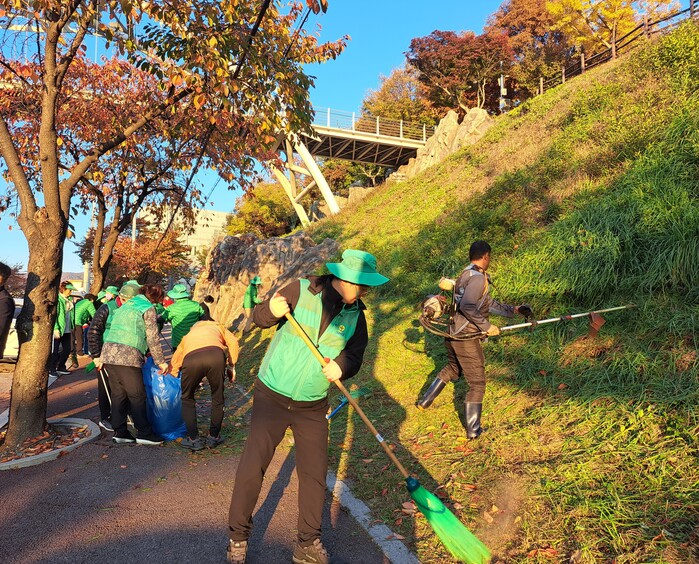 | ▲ 이천시 창전동 새마을남녀협의회는 지난 4일 회원 등 30여명이 참여한 가운데 서희청소년문화센터 인근 도로변 환경 정비 작업을 실시했다. 이천시 제공 |