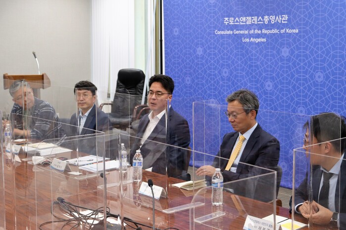 이날 간담회에는 윤태식 청장을 비롯해 김영완 주LA 대한민국 총영사, 신현수 CJ아메리카 회장(남가주한국기업협회 회장), 동행아메리카, 대한전선,ACI(Air Couriers International Inc.), 한국농수산식품유통공사(aT center) 관계자들이 참석했다.