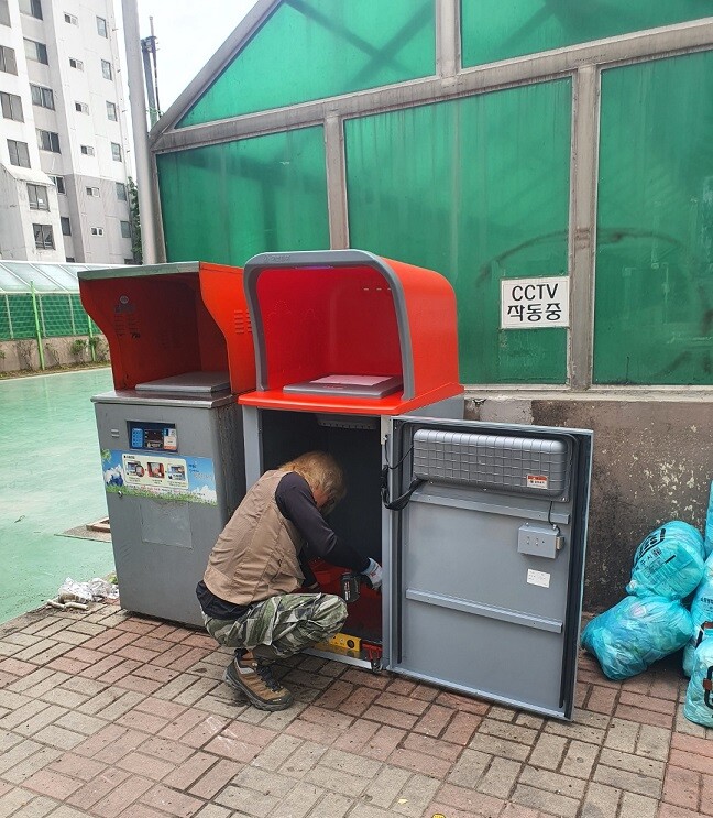 | ▲ 노후 음식물쓰레기 종량기 개·보수 실시 현장. 파주시 제공 |