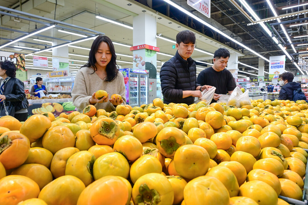 22일 서울 서초구 하나로마트 양재점에서 소비자들이 '제철 단감'을 둘러보고 있다. 농협유통 제공
