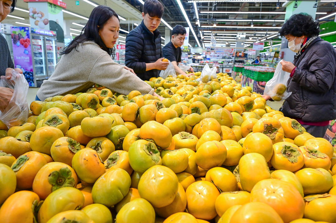 22일 서울 서초구 하나로마트 양재점에서 소비자들이 '제철 단감'을 둘러보고 있다.