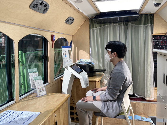 ▲ 토닥토닥 버스에서 뇌파 측정을 받는 모습. 고양시 제공 |