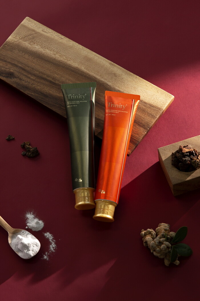 또한 하얀색, 초록색, 붉은색 3줄 무늬 튜브 디자인에는 3가지 원료의 스토리를 담아낸 것이 특징이다. 하얀색은 1,000도씨 이상의 가마에서 9번 구워낸 미네랄이 풍부한 ‘죽염’을 의미하고, 초록색은 3년의 기다림으로 완성되는 ‘전칠’의 생명력을 뜻한다. 마지막으로 48시간동안 녹여낸 아프리카 청정 미르나무 진액을 담은 ‘몰약’은 붉은색으로 표현돼, 3가지 귀한 원료를 시간과 정성으로 담아낸 과정을 상징적으로 표현했다.