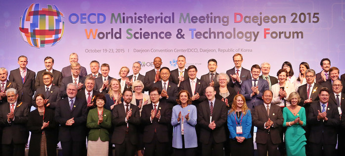 미래창조과학부는 20일, 21일 대전컨벤션센터(DCC)에서 열린 OECD 과학기술장관회의 결과물로 향후 10년간의 세계 과학기술정책 방향을 담은 대전선언문을 채택했다고 21일 밝혔다.