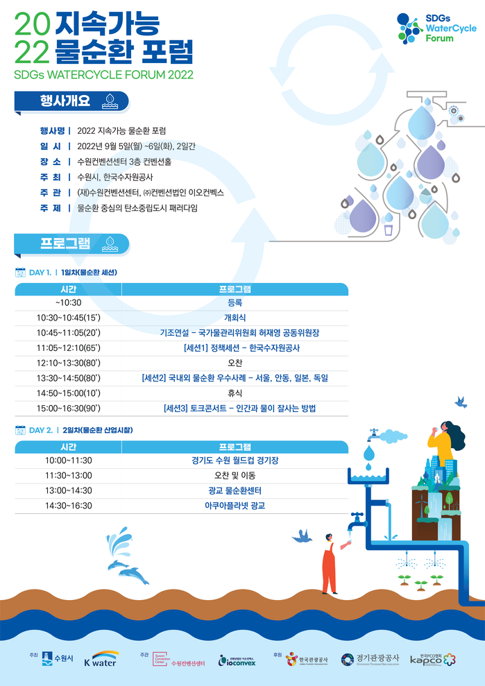 [로컬세계=김병민 기자]경기 수원시가 9월 5일부터 6일까지 수원컨벤션센터에서 ‘2022 지속가능 물순환 포럼’을 개최한다.