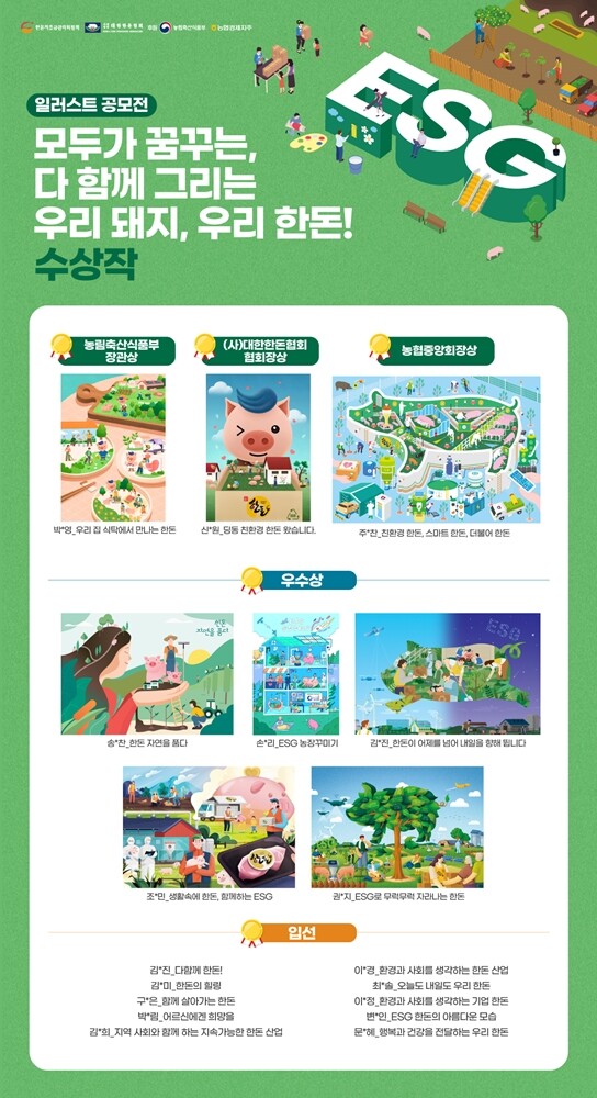 지난 6월 13일부터 7월 31일까지 진행된 일러스트 공모전은 코로나19로 침체된 미술계에 활력을 불어넣고, 환경과 사회에 기여하는 한돈산업의 미래에 대한 다양한 아이디어를 공모하고자 마련됐다.