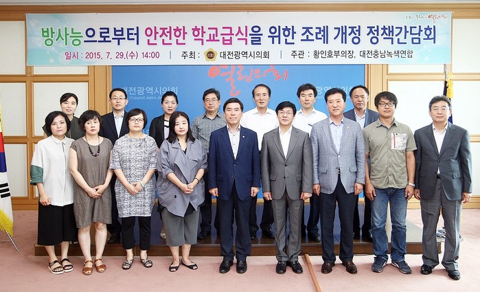 [로컬세계 조윤찬 기자] 황인호 대전시부의장(새정연·동구1)은 지난 29일 의회 대회의실에서 방사능으로부터 안전한 학교급식을 위한 조례 개정 정책간담회를 개최했다.