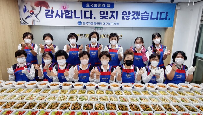 [로컬세계=박세환 기자] 한국자유총연맹 대구북구지회(회장 김문룡)는 지난 8일 호국보훈의 달을 맞이하여 고령의 6.25 참전용사 및 월남전 참전용사 60세대에 정성껏 만든 반찬(5찬)과 과일을 전달해 드리는 ‘호국보훈 반찬 나눔’행사를 개최했다.