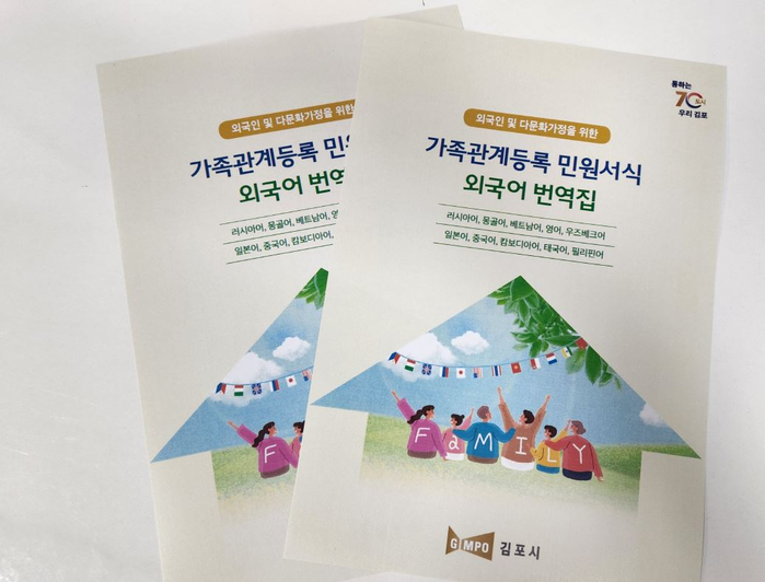 [로컬세계=김병민 기자]경기 김포시(시장 김병수)가 늘어나는 외국인과 다문화가족 민원인의 원활한 민원서비스 이용을 돕고자 주요 민원서식에 대한 ‘가족관계등록 민원서식 외국어번역집’ 을 제작했다.