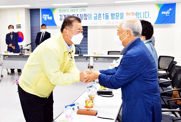 지난달 20일부터 김경일 시장은 파주시 모든 읍면동에서 ’화목한 이동시장실‘을 열고 시민들을 만나고 있다. 운정1동을 시작으로 17개 읍면동에 시장실을 차린 것이다.