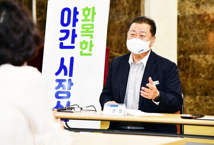 민선 8기가 새롭게 꾸려진 이후에도 김경일 시장은 공약을 지키기 위해 힘쓰고 있는 모습이다. 읍면동 방문을 시작으로 직급별 공무원 간담회를 열었고, 최근에는 ‘화목한 이동시장실’을 운영하며 시민들과 소통에 앞장서고 있는 점이다.