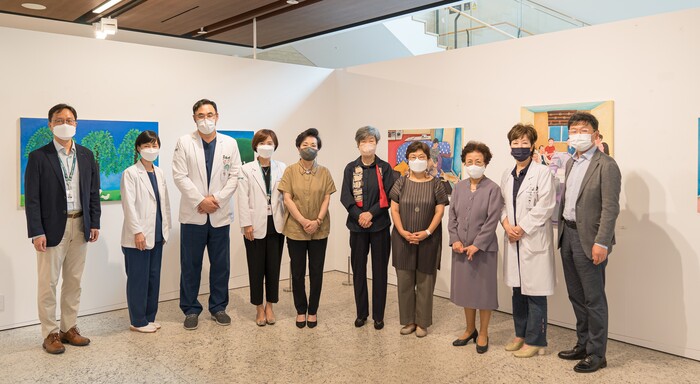 지난 21일 이대서울병원 2층 아트큐브에서 개최된 개인전 오프닝리셉션 행사에는 장명수 학교법인 이화학당 이사장, 신인령 전 이화여대 총장, 유경하 이화여대 의무부총장 겸 의료원장, 유재두 이대목동병원장, 임수미 이대서울병원장 등 병원 관계자들 참석했다.