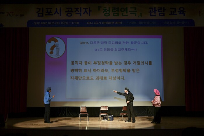 [로컬세계=김병민 기자]경기 김포시는 지난 25일 김포시청 직원을 대상으로 청렴 연극, ‘청렴한 삼시세끼’를 상연했다.