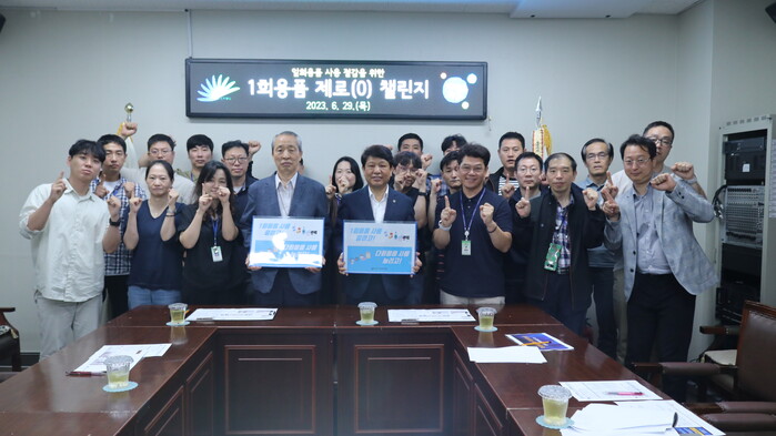 관악구시설관리공단(이사장 천범룡) 임직원이 6월 29일, 일회용품 사용 절감 친환경 캠페인 ‘1회용품 제로(0) 챌린지’에 동참했다.