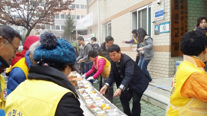 [로컬세계 조윤찬 기자]이정수 대전중구의장은 최근 문화2동 주공아파트 1단지 노인정에서 적십자 중구 협의회 봉사자 60여명과 함께 떡국 나눔행사에 참여했다.