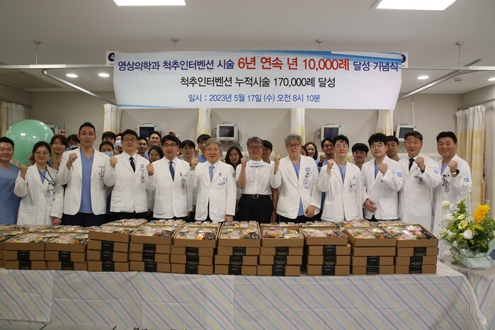 분당서울대병원 영상의학과 척추인터벤션팀은 2003년 병원 개원과 함께 척추인터벤션 시술을 시작한 이래 2016년에 10만 례를 달생했고, 개원 20주년을 맞이한 2023년 5월 17만 례를 넘어섰다. 특히 최근 6년간은 매년 연간 시술건수 1만 례를 달성했다.