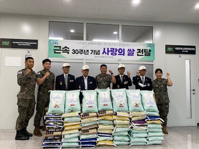 오철환 6.25참전유공자 파주시지회장은 ”군 복무 30년을 훌륭하게 마친 국군 후배가 선배들의 희생을 잊지 않고 쌀을 기탁해주셔서 감사드린다“고 말했다.