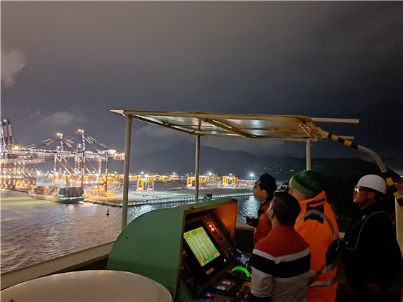 이번 점검은 이용자가 바라보는 항로표지 관점으로 접근하기 위하여 직접 부산항신항을 입항하는 상선(MSC LAGOS X호, 94,402톤)에 승선하여 점검을 진행하였다.