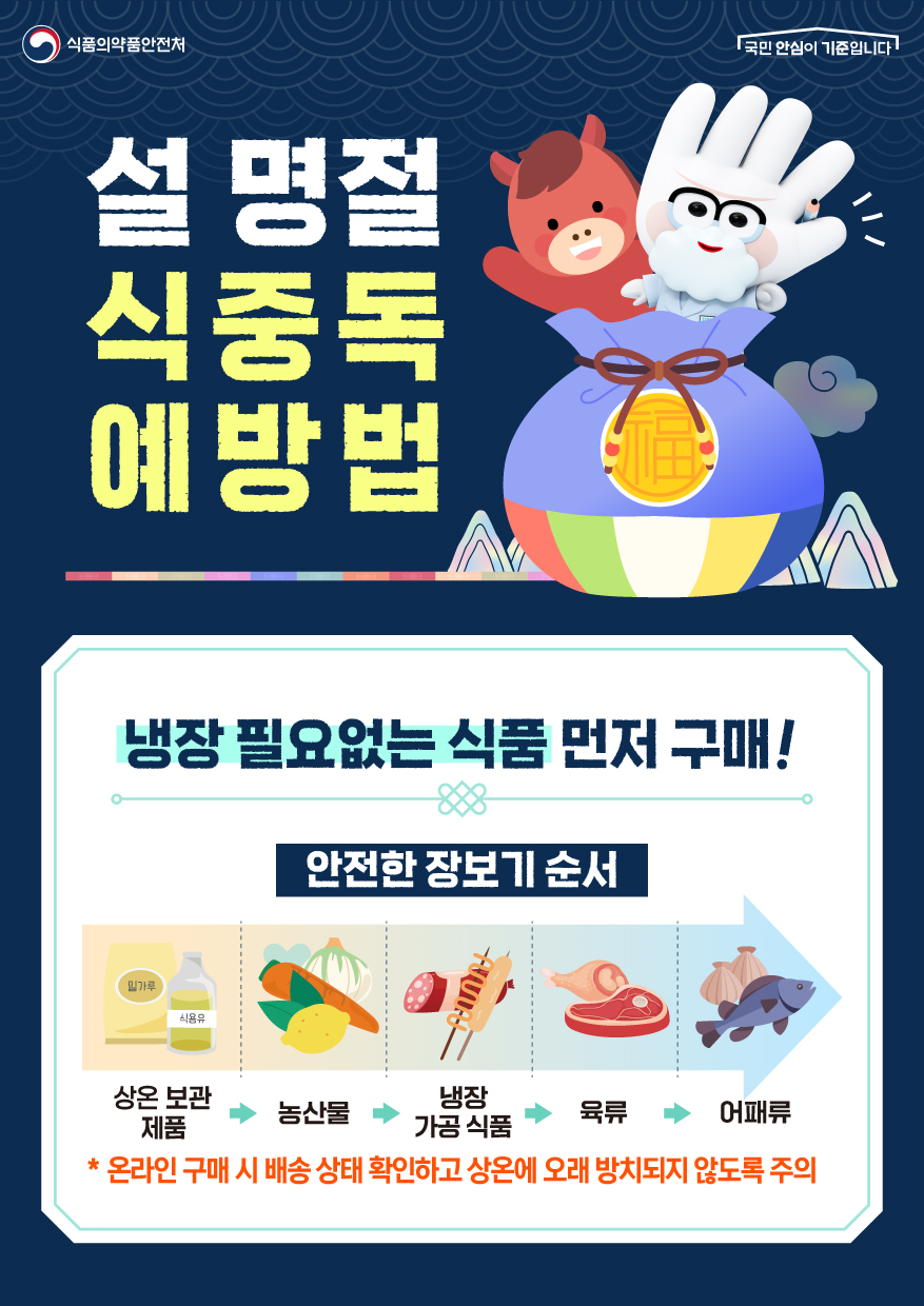 식품의약품안전처는 설 명절을 앞두고 식중독 발생을 예방하기 위해 올바른 장보기 요령과 개인 위생수칙 실천을 당부했다.