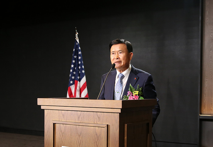 ▲송영규 한민동맹협회 이사장이 대회사를 하고 있다.(한미동맹협회 제공) |