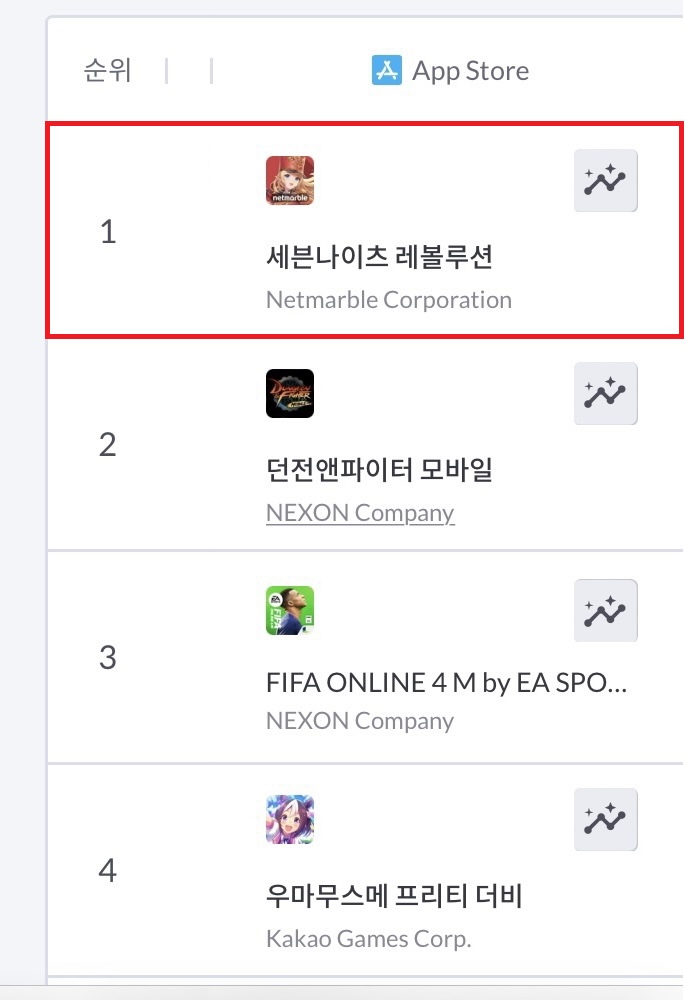 ▲세븐나이츠 레볼루션-애플앱스토어 매출 1위 |