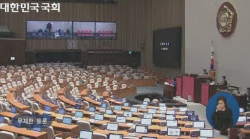 ▲필리버스터가 진행되고 있는 국회 본회의장. 국회TV 화면 캡쳐. |