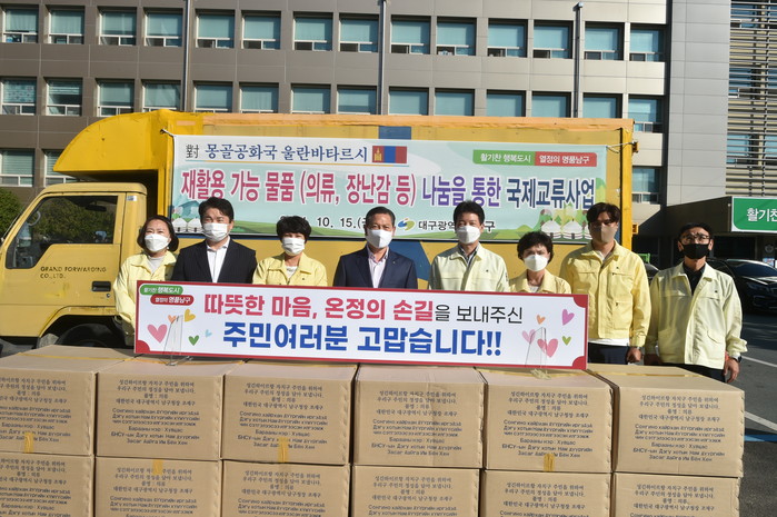 [로컬세계 박세환 기자]대구 남구청(구청장 조재구)은 3월부터 8월까지 몽골 울란바토르市(성긴하이르항 자치구 및 성모자선진료소)에 보낼 재활용 의류(춘추복,동복)와 학용품 등을 수집한다고 17일 밝혔다.