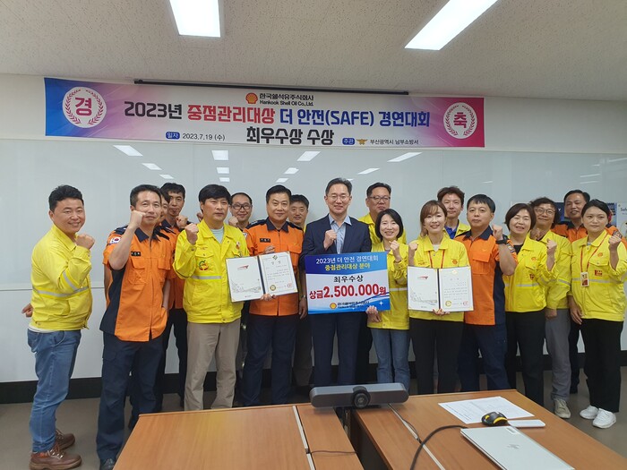 더 안전 경연대회는 소방서별 1차 예선을 거쳐 우수대상으로 선정된 11개소를 대상으로 6월 19일부터 6월 23일까지 5일간 실시됐다. 본선 평가에서 ㈜한국쉘석유가 최우수 대상에 선정돼 안전 인증 현판과 부산소방재난본부장상 및 상금 250만원을 수상했다.