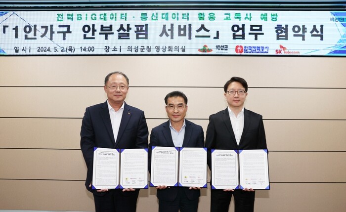 [로컬세계=박상진 기자]경북 의성군은 지난 2일 한국전력공사, SK텔레콤과 전력 및 통신데이터 활용으로 고독사 예방을 위한 ‘1인가구 안부살핌 서비스’ 업무협약을 체결했다고 3일 밝혔다.
