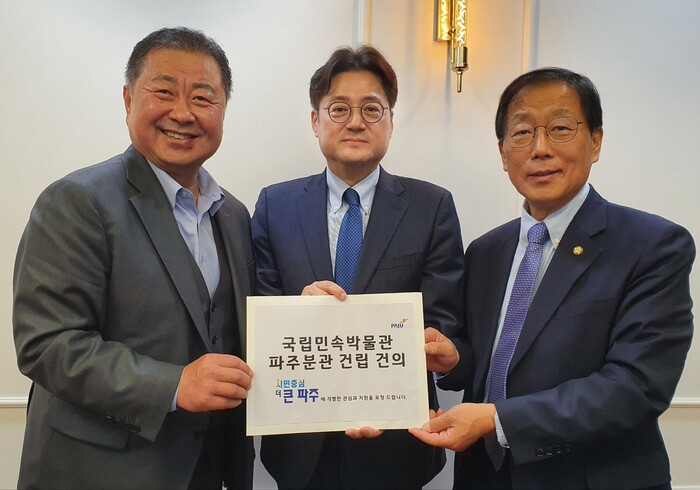 시는 27일 김경일 파주시장이 국립민속박물관 파주분관 유치를 위해 국회에서 홍익표 문화체육관광위원회 위원장과 윤후덕 지역 국회의원을 만나 현재 국립민속박물관 파주 유휴부지를 확장하여 파주분관으로 건립되도록 내년 예산에 반영해 줄 것을 요청했다.