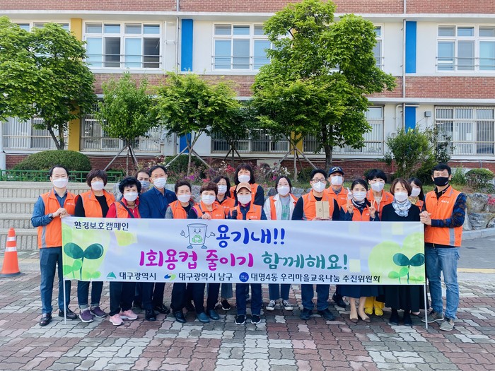 [로컬세계 박세환 기자]대구 남구 대명4동 우리마을 교육나눔 추진위원회와 청소년 마을기획단, 남구방과후아카데미에서 지난 18일, 지구 온난화와 심각한 기후 변화 상황에 맞서 종이컵, 플라스틱 등 일회용품을 줄이기 위한 캠페인을 추진했다고 25일 밝혔다.