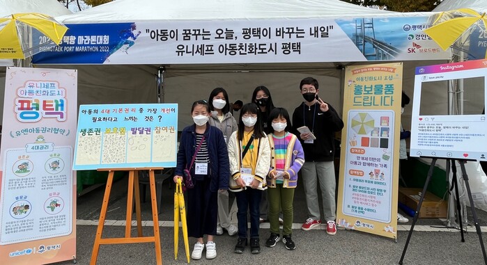 [로컬세계=김병민 기자]경기 평택시(시장 정장선)는 지난 16일 2022 평택항 마라톤대회가 열린 평택항 국제여객터미널에서 아동이 행복한 아동친화도시 평택 조성을 위한 ‘아동 권리 홍보 및 아동학대 예방 캠페인’을 진행했다고 18일 밝혔다.
