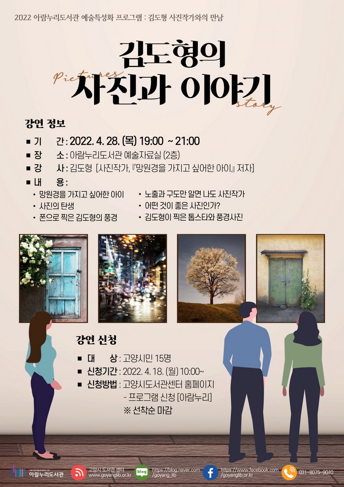 [로컬세계 이영원 기자]경기 고양시(시장 이재준) 아람누리도서관은 오는 28일 오후 7시 김도형 사진작가와의 만남을 개최한다고 16일 밝혔다.