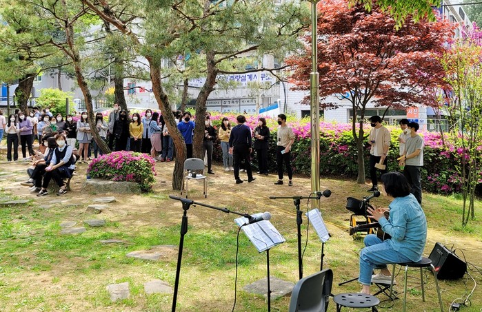 이미 입소문을 타고 시청 직원은 물론 지역 주민들은 약속한 듯 공원 벤치에 둘러 앉았고, 활짝 핀 철쭉을 배경으로 연주하는 이들의 모습을 감상했다.