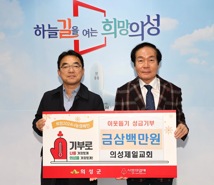 [로컬세계=박상진 기자]경북 의성군은 지난 12일 의성제일교회 성도 일동이 연말 이웃돕기성금으로 경북사회복지공동모금회에 300만원의 성금을 기부했다고 13일 밝혔다.
