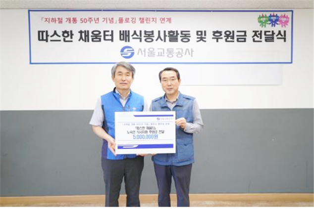 ▲ 백호 서울교통공사 사장(왼쪽)과 김영수 따스한 채움터 시설장(오른쪽) / 서울교통공사 제공 |
