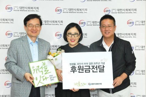 [로컬세계 남성업 기자]정샘물(메이크업아티스트), 유민석(정샘물뷰티 대표) 부부가 결혼 20주년을 맞아 지난 8일 대한사회복지회를 방문해 후원금을 전달했다.