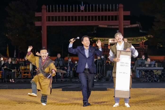 | ▲ 이재준 수원시장(가운데)이 폐막 공연에 함께하고 있다. 수원시 제공 |