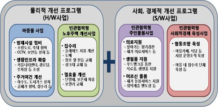 올해 민관협력사업은 물리적 지원을 위한 노후주택 개선사업뿐만 아니라, 정서적 지원을 위한 주민 돌봄사업, 지속가능한 지원을 위한 사회적경제 육성사업까지 세 종류의 사업이 추진된다.
