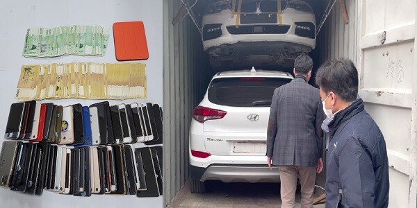 ▲부산경찰청 강력범죄수사대가 압수한 차량과 휴대폰, 현금 등 압수물품들. 부산경찰청 제공 |