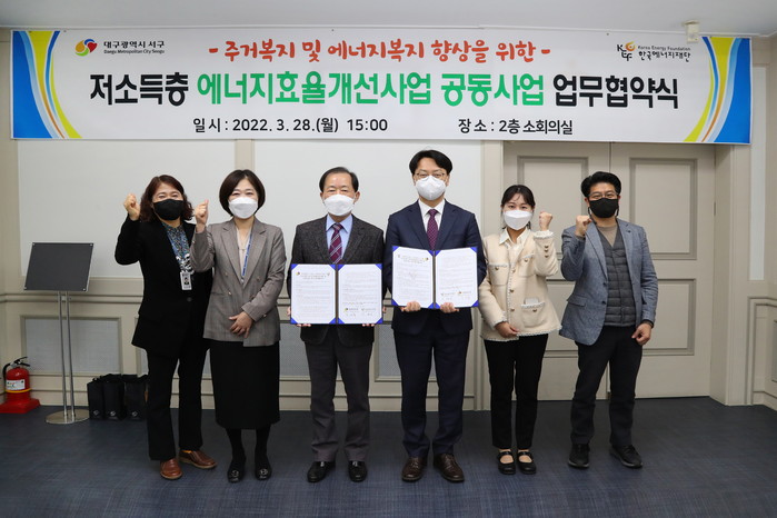 [로컬세계 박세환 기자]대구 서구청은 한국에너지재단과 지난 28일 구청 회의실에서 관내 저소득층을 대상으로 주거 환경과 에너지 사용 환경 개선을 통한 주거복지 및 에너지 복지 지원을 위한 업무 협약을 체결했다고 30일 밝혔다.