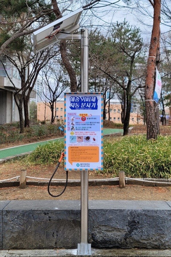 [로컬세계 박세환 기자]대구 달서구는 지난 18일 지역주민 다수가 이용하는 주요 등산로, 공원 등에 모기·진드기 등 해충매개 감염병을 예방하기 위해 해충기피제 자동분사기를 설치했다고 21일 밝혔다.