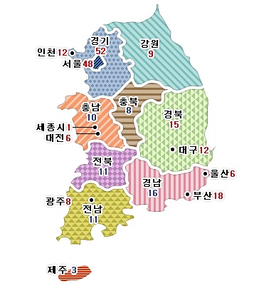 ▲ 지역구 의원정수. <자료출처=중앙선거관리위원회 홈페이지> |