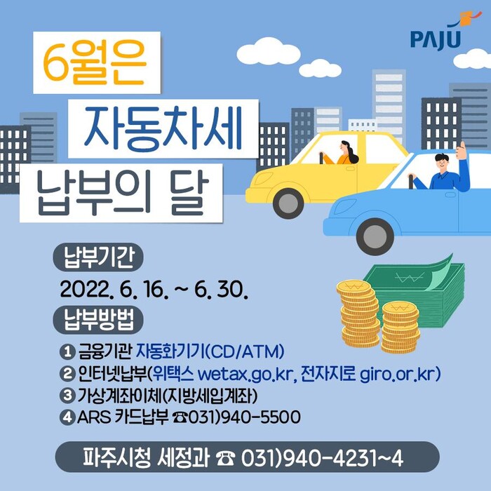 ▲ 파주시 자동차세 납부 안내 포스터. 파주시 제공 |
