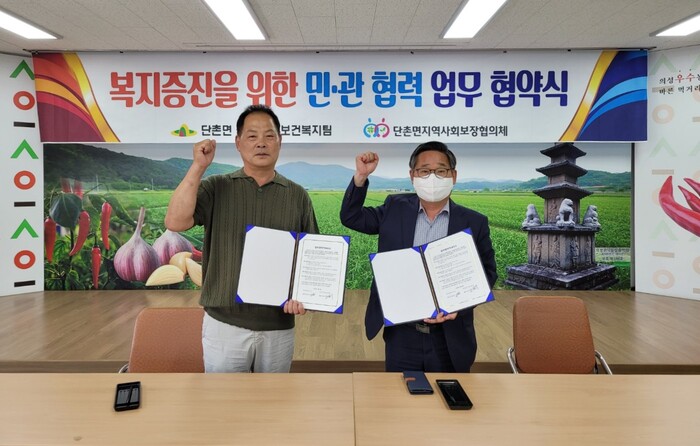 [로컬세계=박상진 기자]경북 의성군 단촌면 찾아가는보건복지팀은 의성읍에 사업장을 두고있는 경북안전용품점과 지난 3일 단촌면사무소에서 지역 민간자원을 발굴해 주민들에게 다양한 복지서비스를 연계하기 위한 업무협약식을 진행했다고 8일 밝혔다.