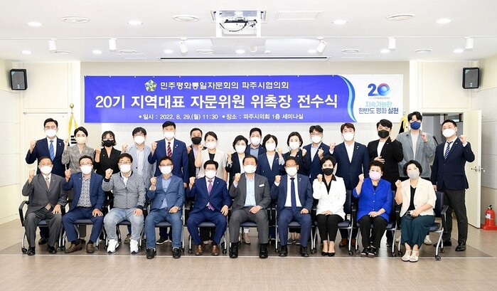 [로컬세계 = 이영원 기자]경기 파주시(시장 김경일)는 29일 오전 파주시의회 세미나실에서 제20기 민주평통 파주시협의회 지역대표 자문위원에게 위촉장을 전수했다.