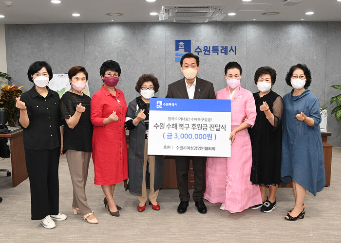 [로컬세계=김병민 기자] 수원시여성경영인협의회가 “수해 복구에 사용해 달라”며 경기 수원시에 300만 원을 기부했다.